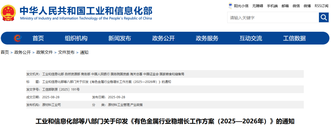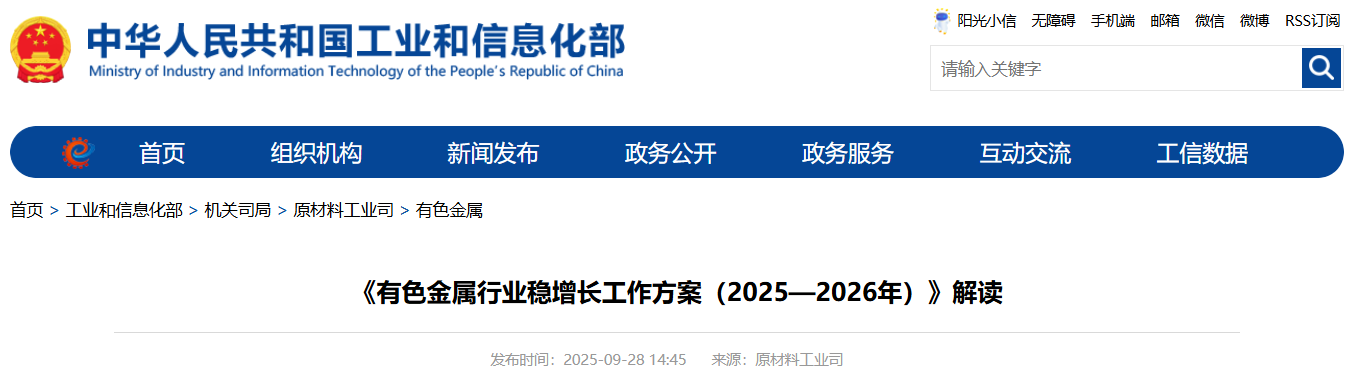 《有色金属行业稳增长工作方案(2025—2026年)》